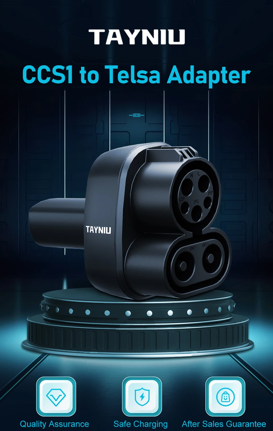 SAFETY CERTIFIED: TAYNIU is a leading manufacturer of EV products and accessories. The TAYNIU CCS1 to Tesla portable charging adapter is SGS listed and complies with UL 2231 and CSA C22.2 (North American safety standards). Note: This adapter is not compatible with non-Tesla electric vehicles.